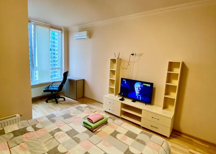 Апартаменти Затишна квартира в ЖК Каховська, метро Лівобережна, МВЦ Київ - чудове місце для проживання в районі Дніпровський, за 2 км від Гідропарку. Гості можуть скористатися Wi-Fi як для роботи, так і для відпочинку.